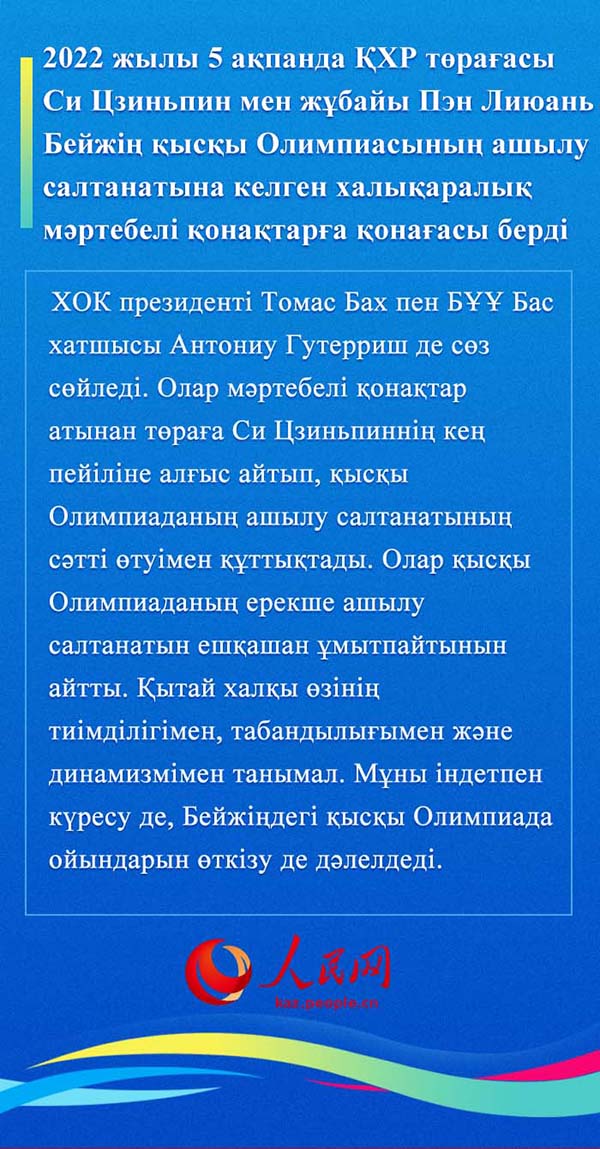 2022 жыл?ы Бейж?? ?ыс?ы Олимпияда ойындарыны? ашылу салтанатына келген халы?аралы? м?ртебел? ?она?тарды? леб?з? (3)