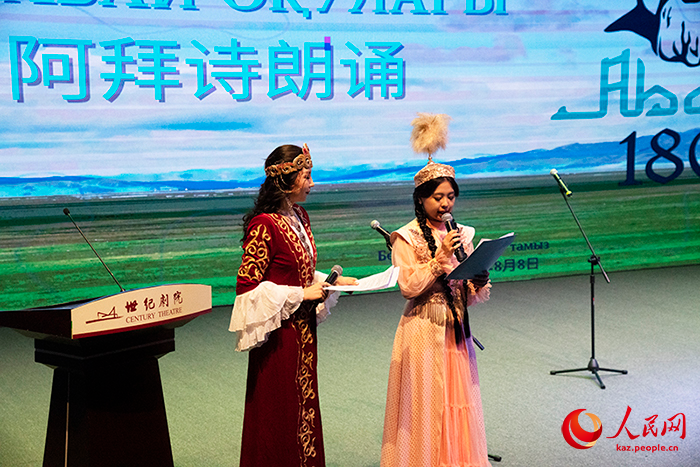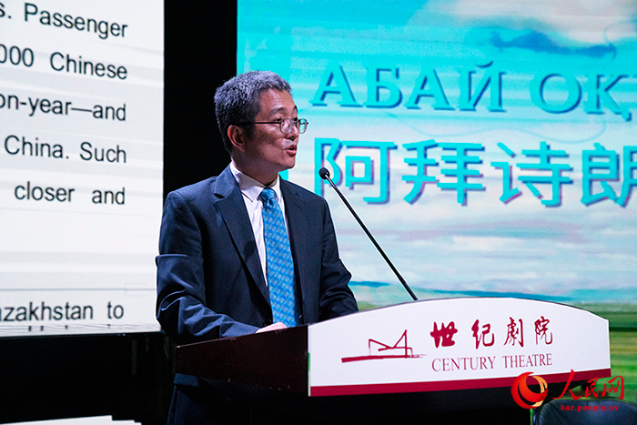 12 тамыз, онлайн ?Халы? Газет?? -- 8 тамызда ?аза?станны? ?лы ойшылы, а?ыны ж?не а?артушысы Абай ??нанбай?лыны? ту?анына 180 жыл толуына орай ?аза?станны? ?ытайда?ы елш?л?г? Бейж??дег? Century театрында ?Абай о?улары? ?с-шарасын ?тк?зд?. О?ан ?ытай Сырт?ы ?стер министрл?г?н?? Еуразиялы? департамент?н?? жауапты ?к?л?, ?ытайда?ы кейб?р елдерд?? дипломатиялы? ?к?лдер?, ?ытайлы? зиялы ?ауым ж?не ?нер ?к?лдер?, ?ытайда?ы ?Р азаматтары, ?ытай мен ?аза?станны? БА? т?лш?лер? сия?ты ж?зден астам адам ?атысты.